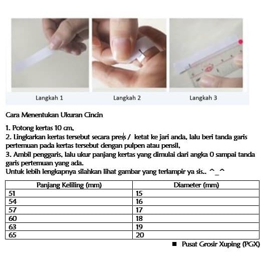 Xuping Original Lapis Emas Ukuran Cincin Cara Keliling Jari 1 Siapkan Benang Kertas 2 Lingkarkan Pada Jari Yang Akan Dipergunakan Sebagai Tempat Cincin 3 Hitung Panjang Benang Kertas
